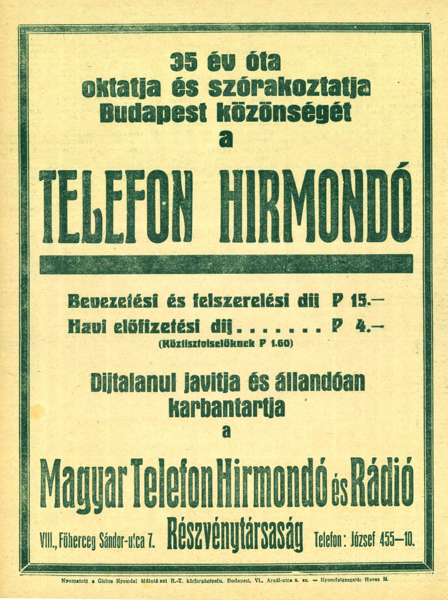 tűnő szolgáltatás akkoriban korszerűnek számított és a Magyar Telefonhírmondó