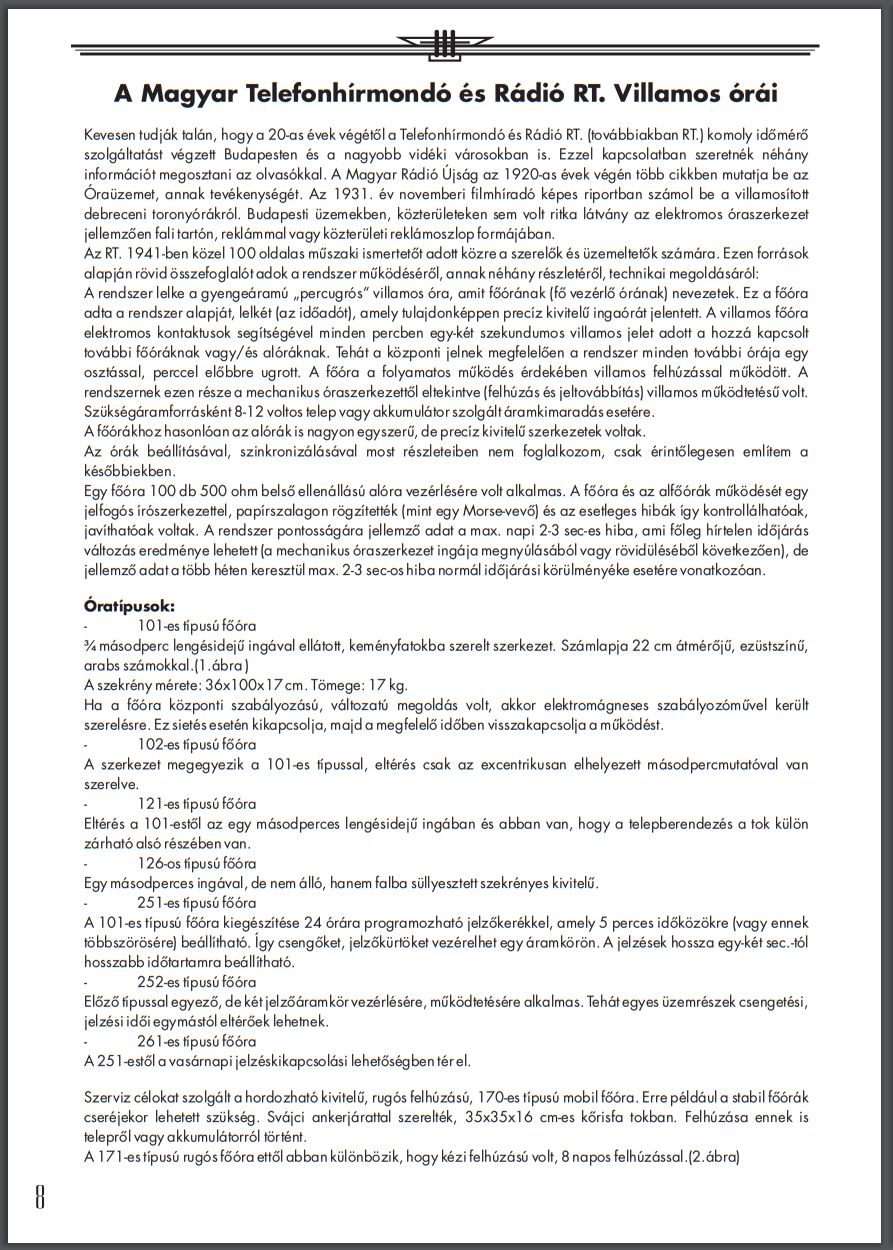 Magyar Telefonhírmondó és Rádió RT. Villamos órái